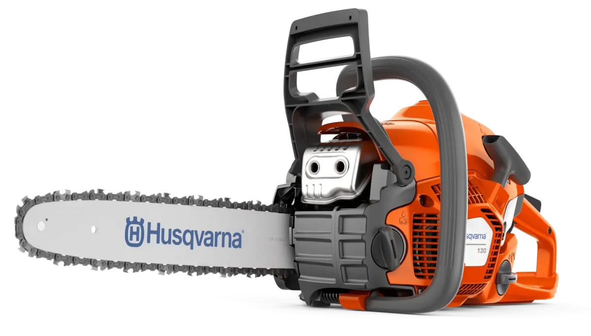 Husqvarna 130 är en pålitlig motorsåg som är lätt att starta, lätt att hantera och utvecklad för trädgårdsuppgifter som vedkapning, beskärning eller fällning av små träd. LowVib®-tekniken minskar vibrationerna så att du kan arbeta mer bekvämt, och den kraftulla X-TORQ®-motorn har ett högt vridmoment tack vare högeffektiv förbränning. Dessutom är den lätt att underhålla tack vare Air Injection™ som håller filtret renare längre. Vid ett kast stoppar den effektiva tröghetsaktiverade kedjebromsen omedelbart kedjan för att minska risken för skador.