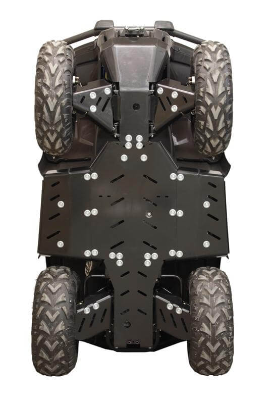 Skydda underredet på din ATV med en heltäckande hasplåt i plast. Här får du en stark och tålig hasplåt som skyddar både underrede, a-armar och fotbaljor mot slag och skador. Hasplåten är tillverkad i 10 mm HDPE plast som enkelt glider över stockar och stenar i ojämn terräng. Plasten gör att du slipper en hasplåt som böjer sig, rostar eller ärgar. Enkel att montera med skräddarsydd passform till din ATV. Hasplåten är förberedd för plogfäste och har servicehål för enkel åtkomst till oljepluggar. Dräneringshål gör att vatten och lera enkelt förs bort under hasplåten.