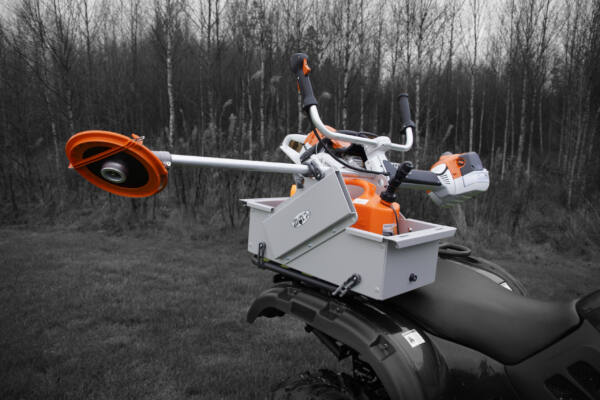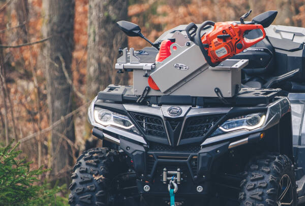 Skogshuggarens bästa ATV- tillbehör. Timber boxen från Black Wolf gör att du enkelt och smidigt får med dig alla redskap ut i skogen. Packningen till skogsarbetet förenklas väsentligt med plats för förvaring av bland annat motorsåg, röjsåg, oljedunkar och verktyg.