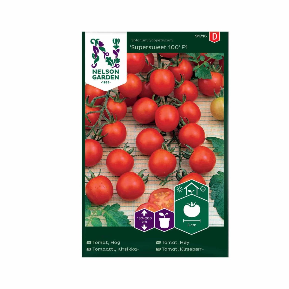 Supersweet’ F1 har allt en bra körsbärstomat ska ha. För det första är den mycket dekorativ med långa förgrenade rankor som bär stor mängd frukt. Frukten är ljust röd med tunt skal, fruktköttet är saftigt och smaken är extremt söt. ’Supersweet’ F1 producerar mycket frukt som skördas efterhand som de mognar. Plantan blir sällan sjuk då den har god sjukdomsresistens.