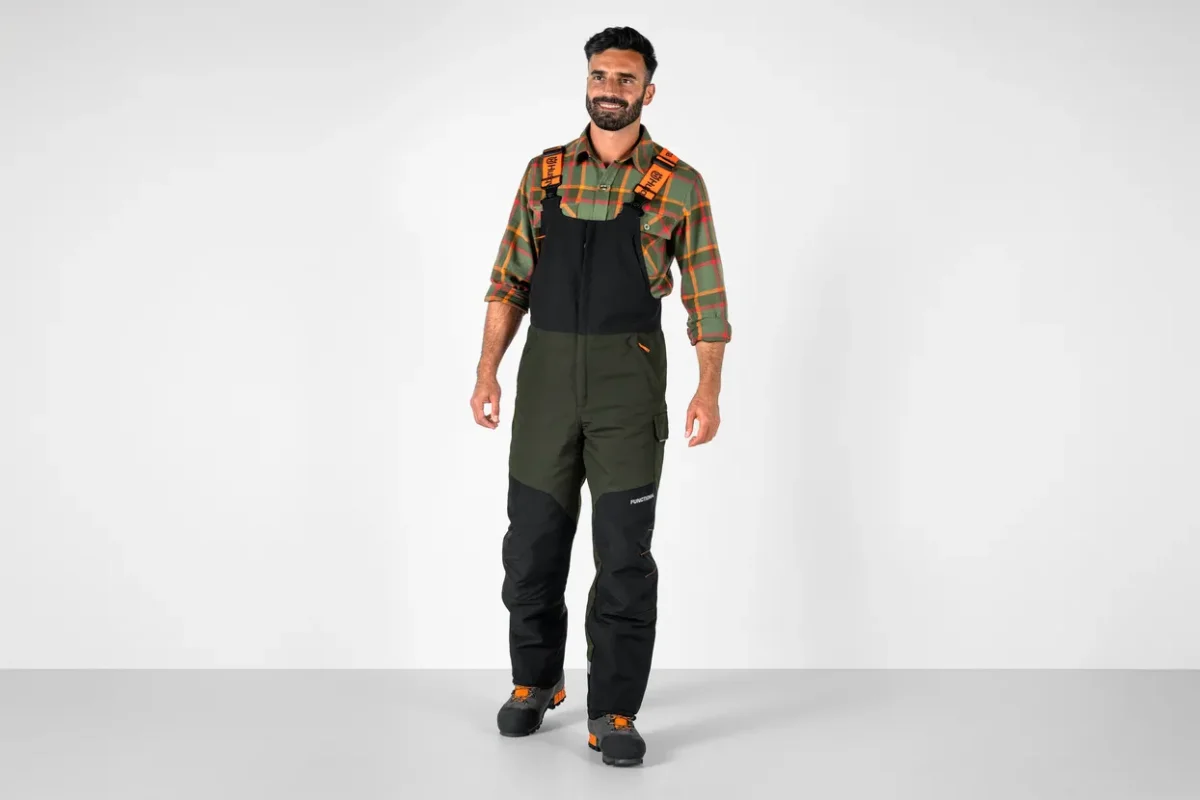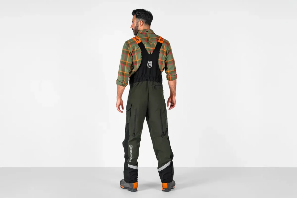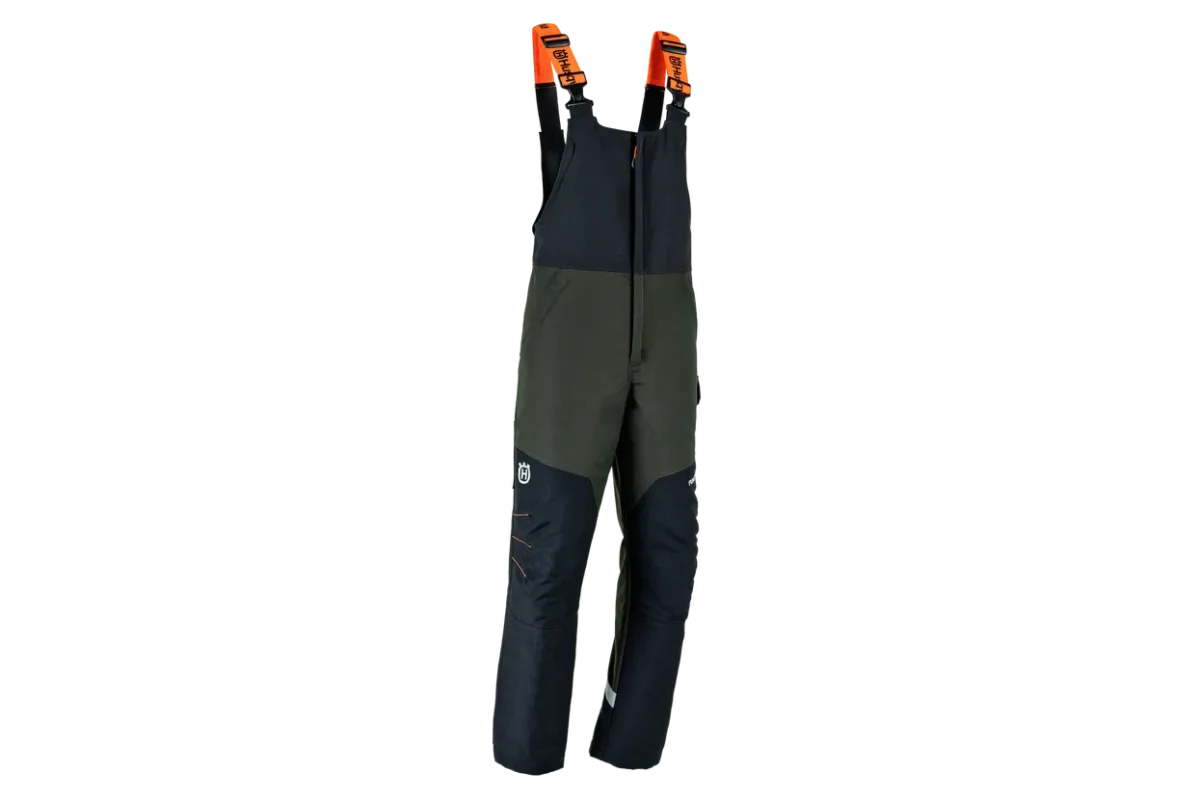 Husqvarna Functional hängslebyxor, utformade i friluftsstil, är perfekta för skogsarbete. Slitstarkt Cordura®-material används på utsatta områden för att motstå tuff användning. De är utformade för komfort och produktivitet och har ventilationsdragkedjor, sidoficka och tumstocksficka. Uppfyller EN ISO 11393 klass 1 (20 m/s). Finns i storlekarna 42–62.
