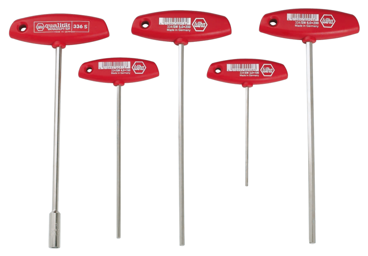 Husqvarna kit med 5 st hex nyklar med t-handtag. Innehåller 5 mejslar som är 3, 4, 5, 6 och 8 mm.