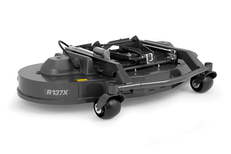 Högpresterande 137 cm kombiaggregat. En innovativ teknisk lösning från Husqvarna som ger ett kombinationsaggregat med mulching och bakutkast i ett och samma aggregat. Kraftig aggregatkonstruktion pressat i ett stålplåtstycke. Den elektriska klipphöjdsjusteringen kan enkelt manövreras från förarsätet.