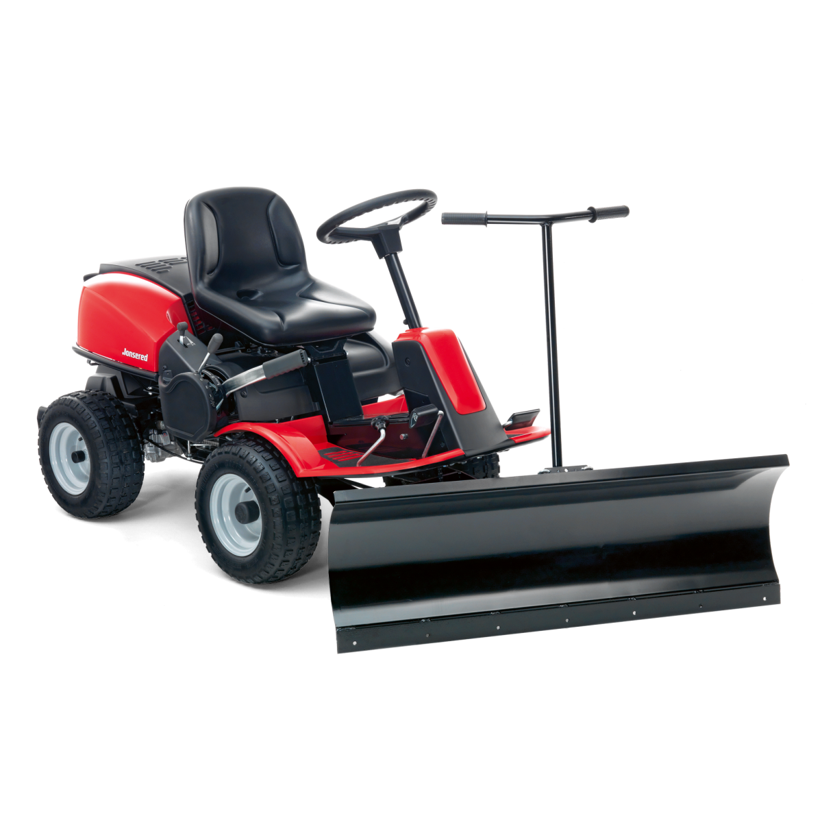 Kraftigt snöblad med stålkant. Gummiskär finns som tillbehör. Inställbart i fem vinklar (-30°, -15°, 0°, 15°, 30°), arbetsbredd 120 cm. För bakhjulsdrivna Riders ska hjulvikter och snökedjor användas. Använd inte hjulvikter och snökedjor på AWD-Riders.