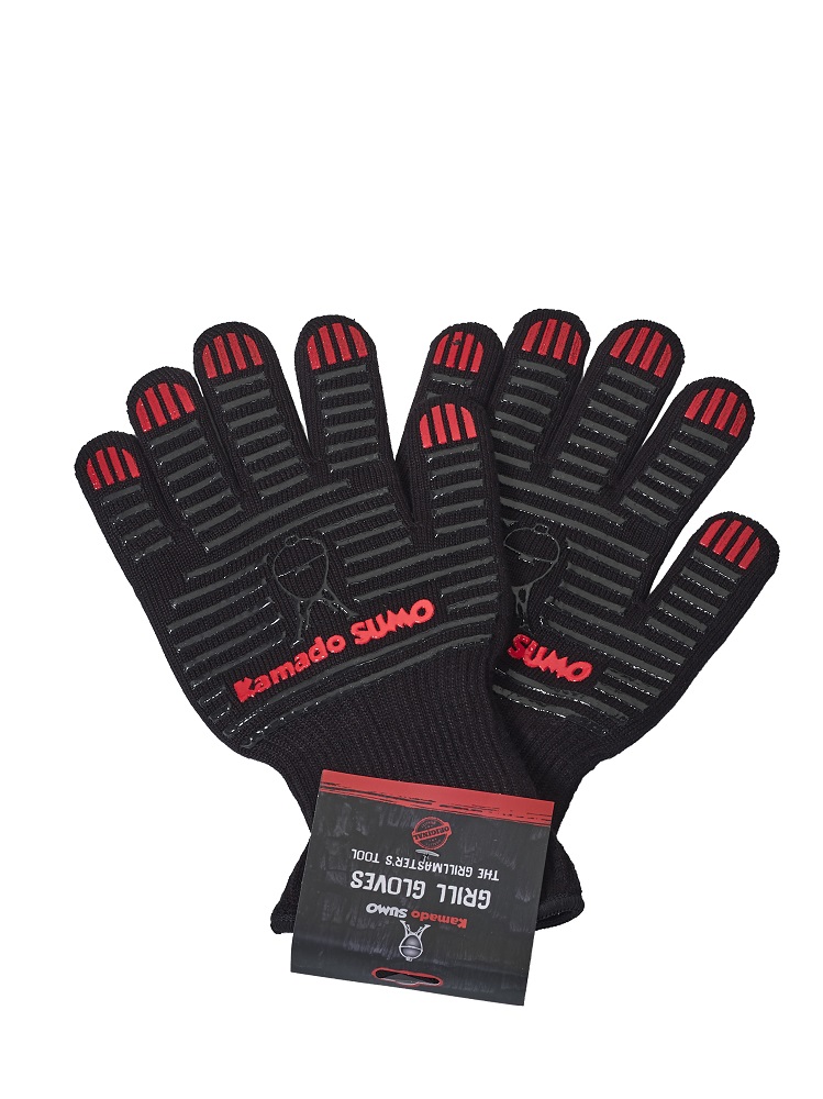 Ett par med dubbelfodrade grillhandskar från Kamado SUMO för att undvika brända fingrar vid årets grillningar. Bra grepp och skönt värmeskyddande. En rolig och bra gåva till grillarmästaren.