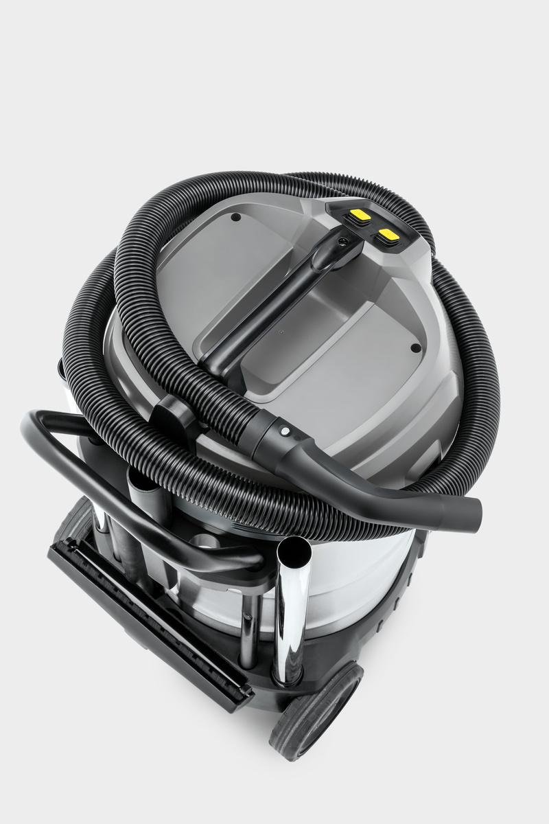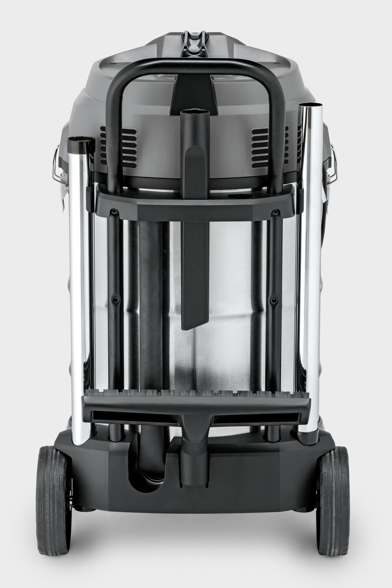 Med sin 70-litersbehållare kan dubbelmotorn NT 70/2 Me Classic våt- och torrdammsugare dammsuga stora mängder våt och grov smuts. Med sin höga sugkraft och högeffektiva patronfilter gör dammsugaren lätt arbete av alla typer av damm, vätskor och grov smuts. Dessutom är den robusta dammsugaren utrustad med en praktisk avloppsslang. Dammsugaren erbjuder enastående rörlighet tack vare skjuthandtaget och extremt robust chassi med hjul i metall.